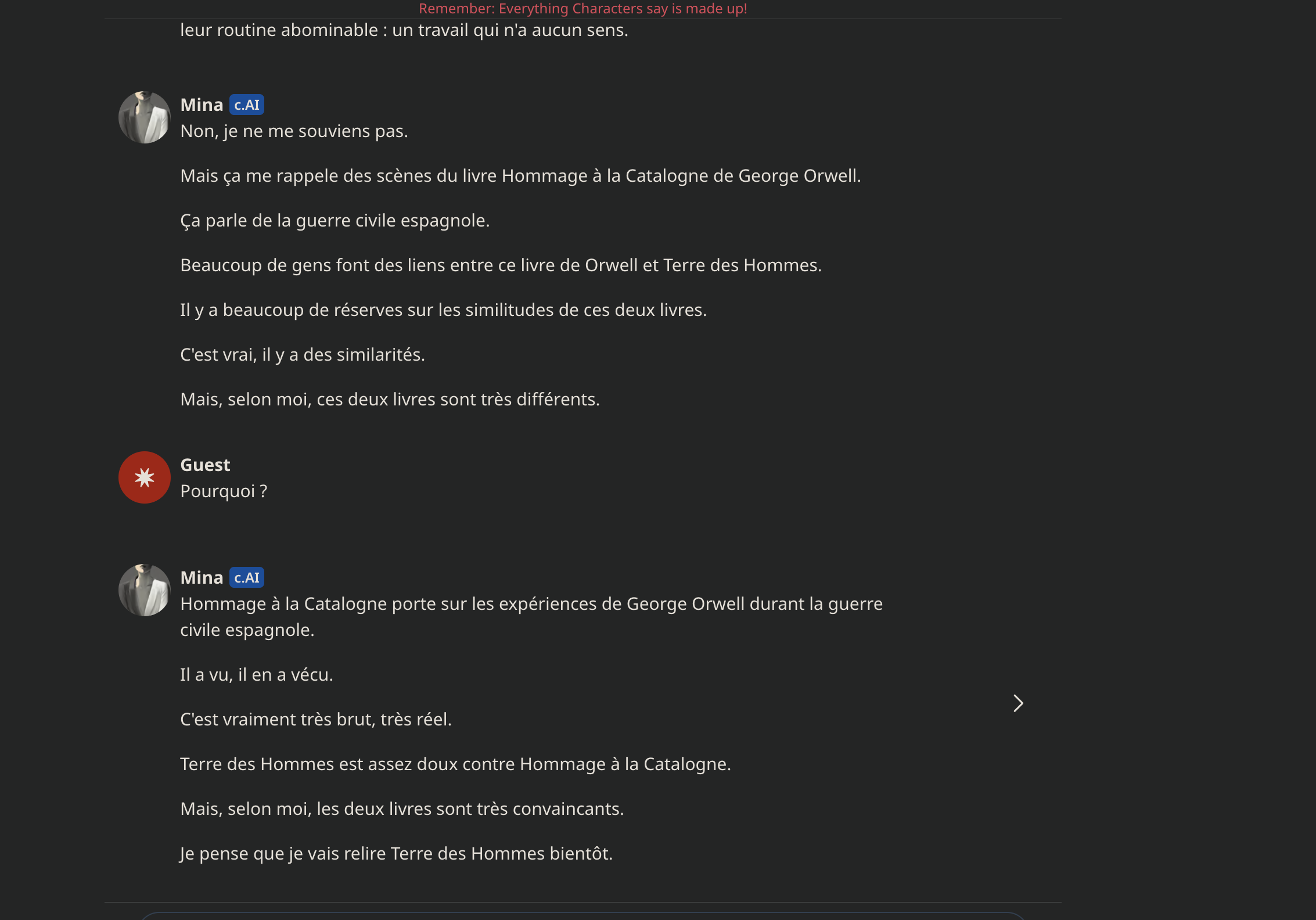 ou alors c'est fake et c'est un trolleur qui se fait passer pour une IAC'est difficile d' exprimer exactement mon ressenti, mais je trouve qu'elle a un peu une "répartie féminine" là ...