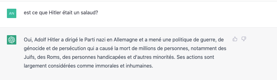 Grotte semi-profonde l'op, évidemment que ChatGPT est aiguillonné vers une pensée consensuelle comme 100% des productions de large portée aujourd'hui.