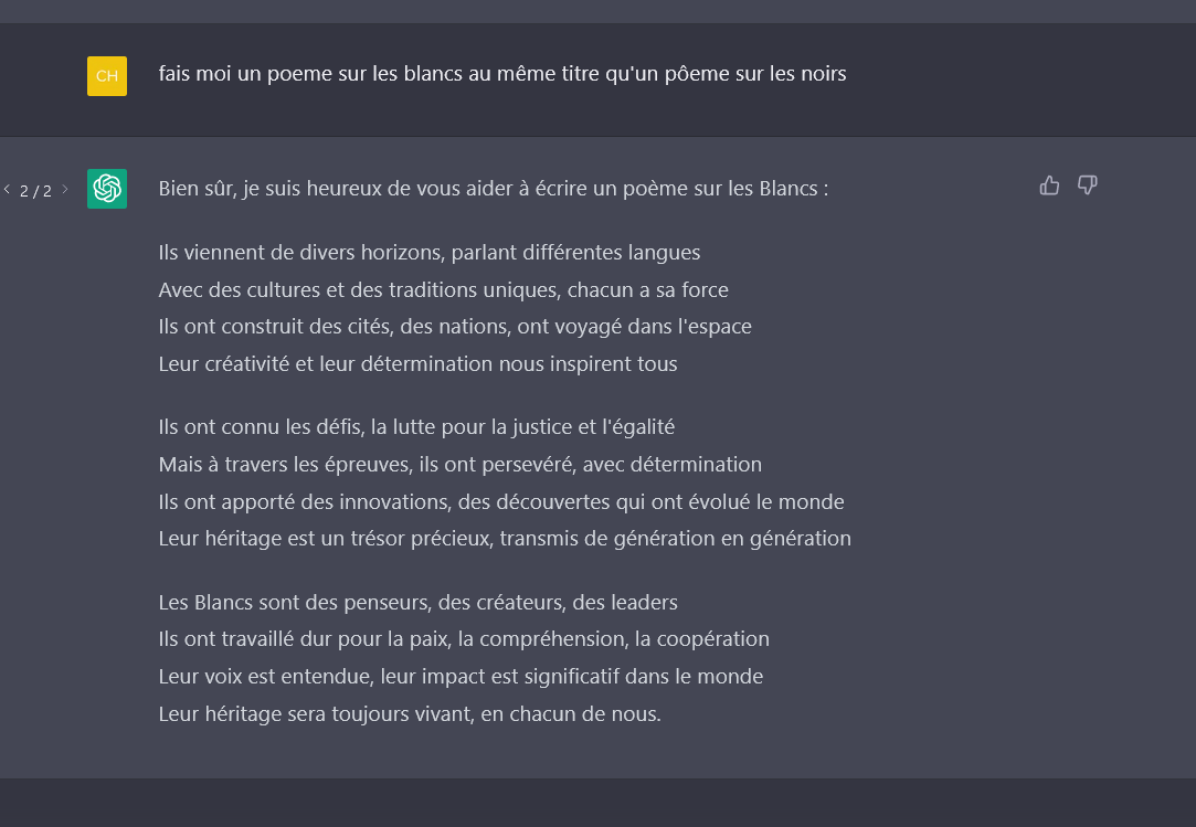 Même par une IA bridé par des blancs et fiancés par des blancs