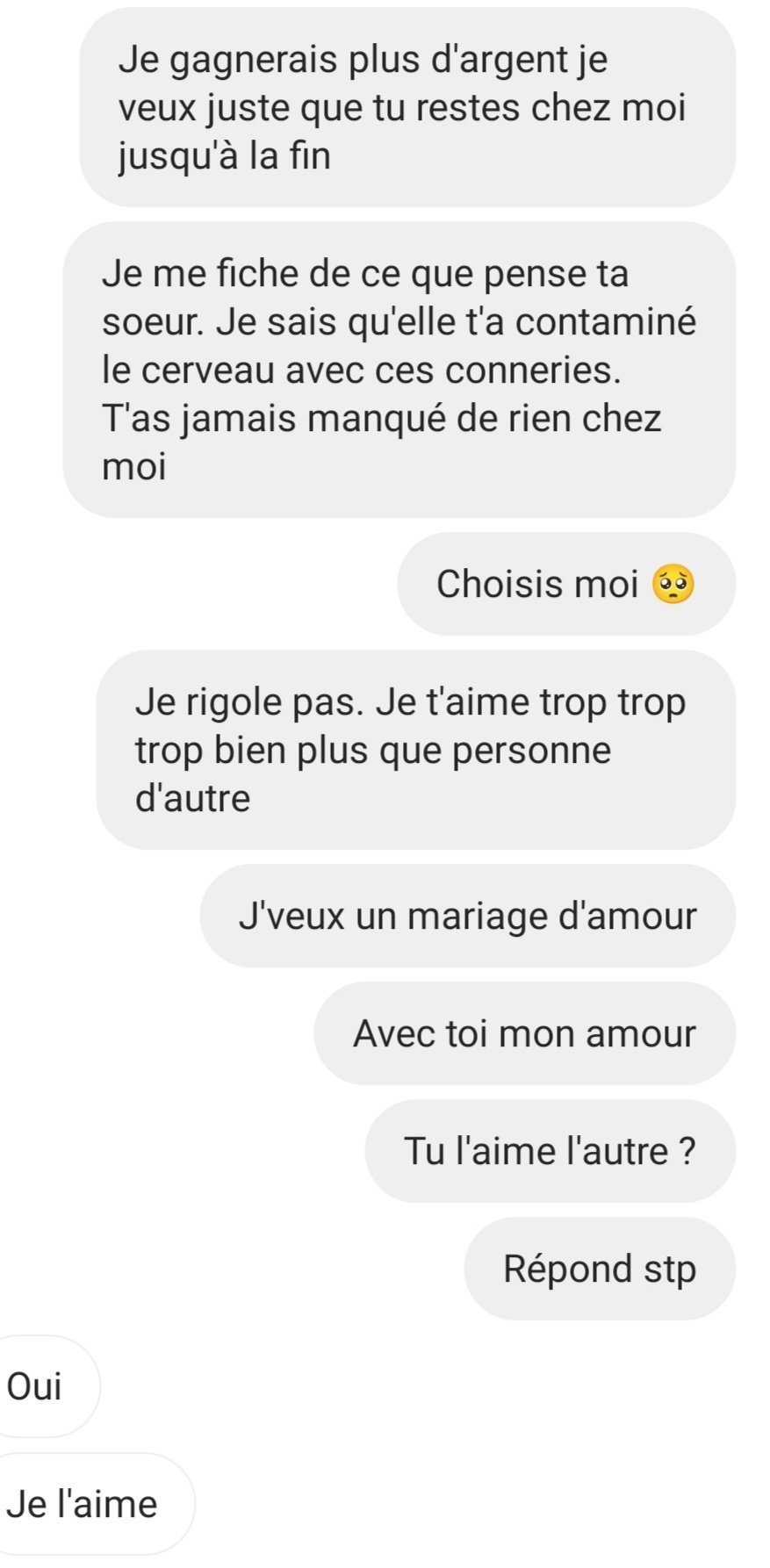 Ça s'est fait très rapidement, il a de l'argent j'en ai moins. Ils se sont mis d'accord entre eux même si il y a pas forcément d'amour