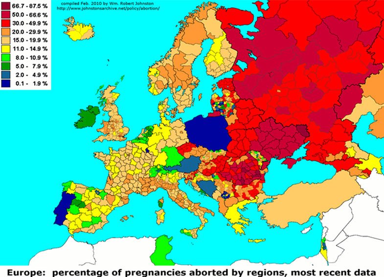 En Russie, on ne rigole pas avec l'avortement. Carte des avortements en Europe :![]()