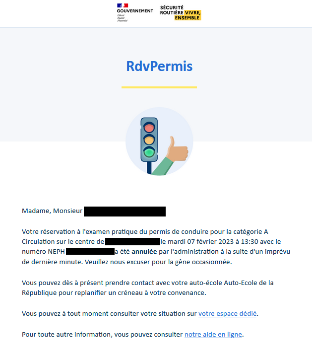 S'ils avaient fait ça pour mon épreuve ça m'aurait bien casser les couillesMon Code de la route était valable encore 15 jours, il aurait fallu que je me fasse chier à le repasser