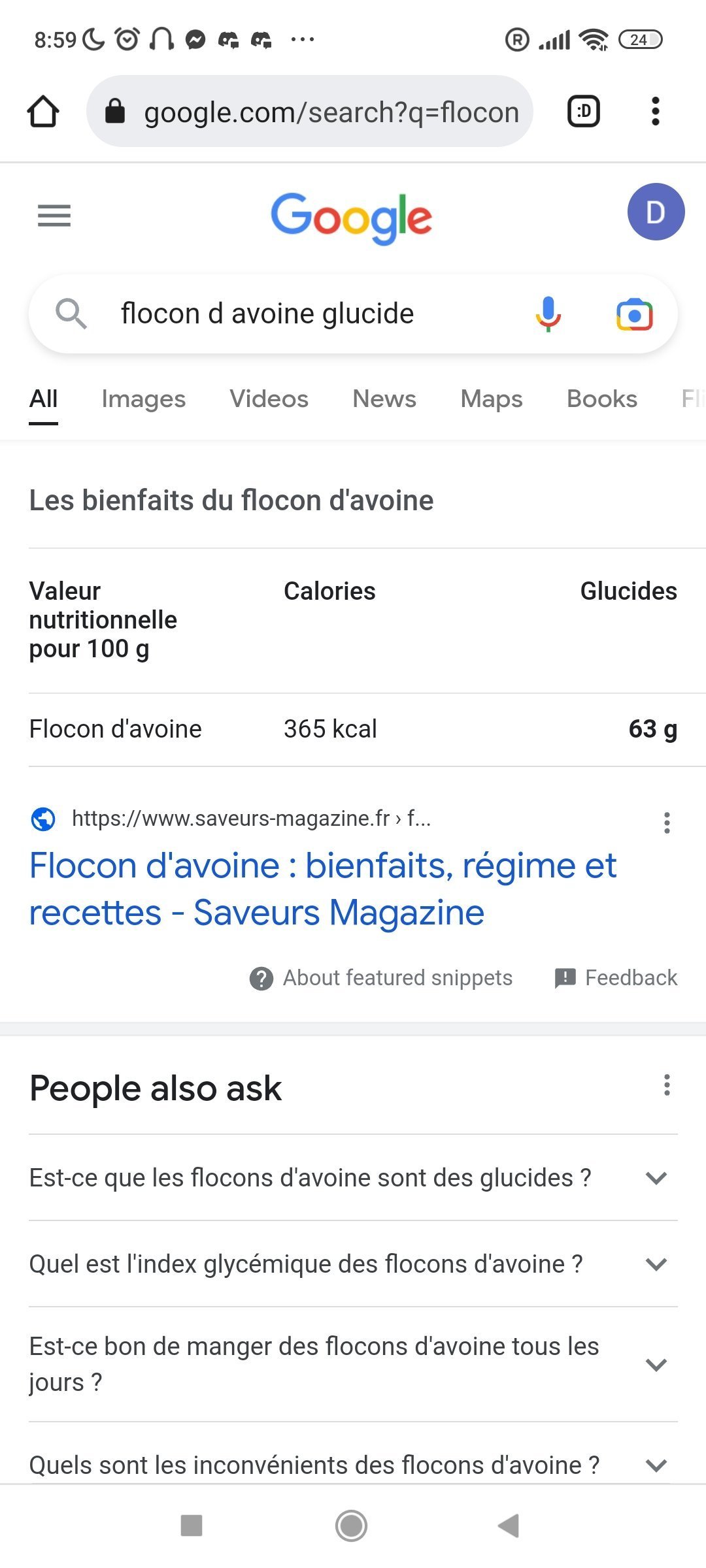 Pas mal khey mais la teneur en glucide dans les flocons d'avoine c'est la même chose que pour les céréales