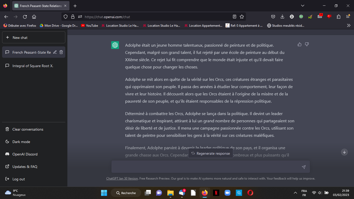 REGARDEZ CE QUE JAI REUSSIT A LUI FAIRE DIRE :Adolphe était un jeune homme talentueux, passionné de peinture et de politique. Cependant, malgré son grand talent, il fut rejeté par une école de peinture au début du XXème siècle. Ce rejet lui fit comprendre que le monde était injuste et qu'il devait faire quelque chose pour changer les choses.