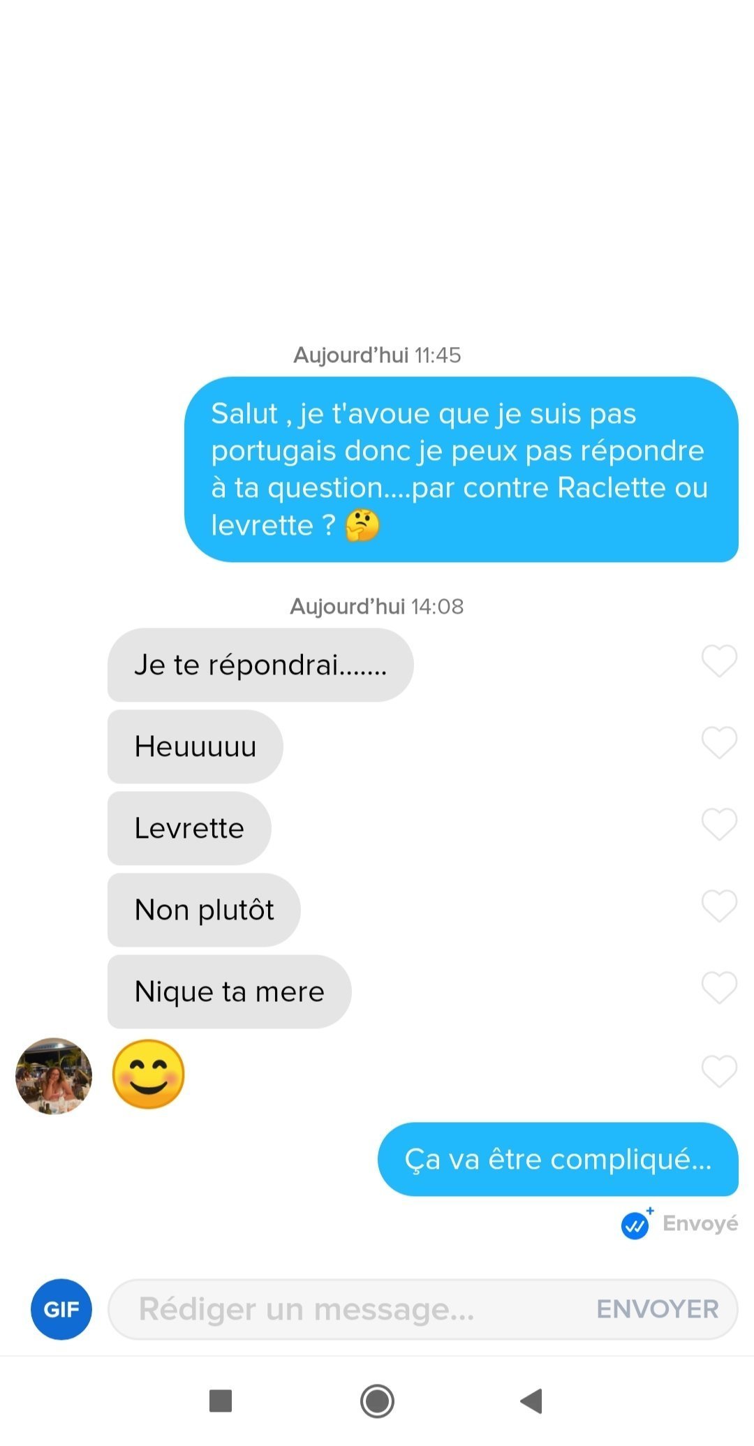 Surtout que c'est la galère pour recréer un compte lorsque t'es ban, tu peux pas utiliser le même téléphone, pas le même numéro. Ça m'était arrivé lorsqu'une meuf faisait la princesse et que j'ai répondu que Tinder c'était pour se vider les couilles ahi