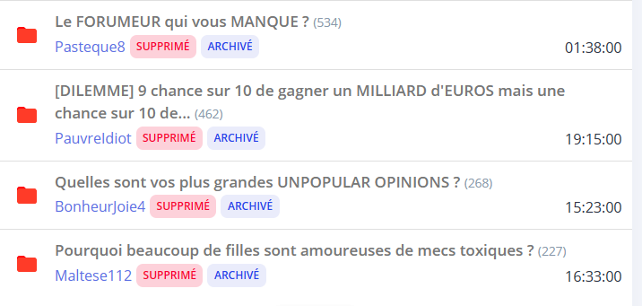 la liste des topics les plus populaires supprimés ces dernières 24haucun ne semble hors charte et pourtant ils ont tous été supprimé par la modération