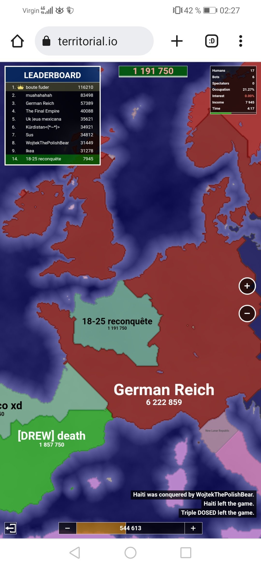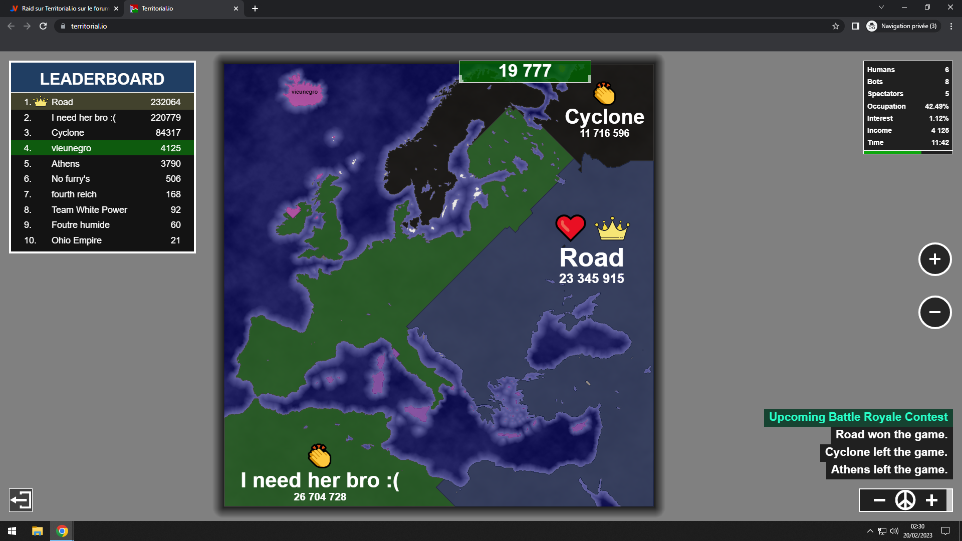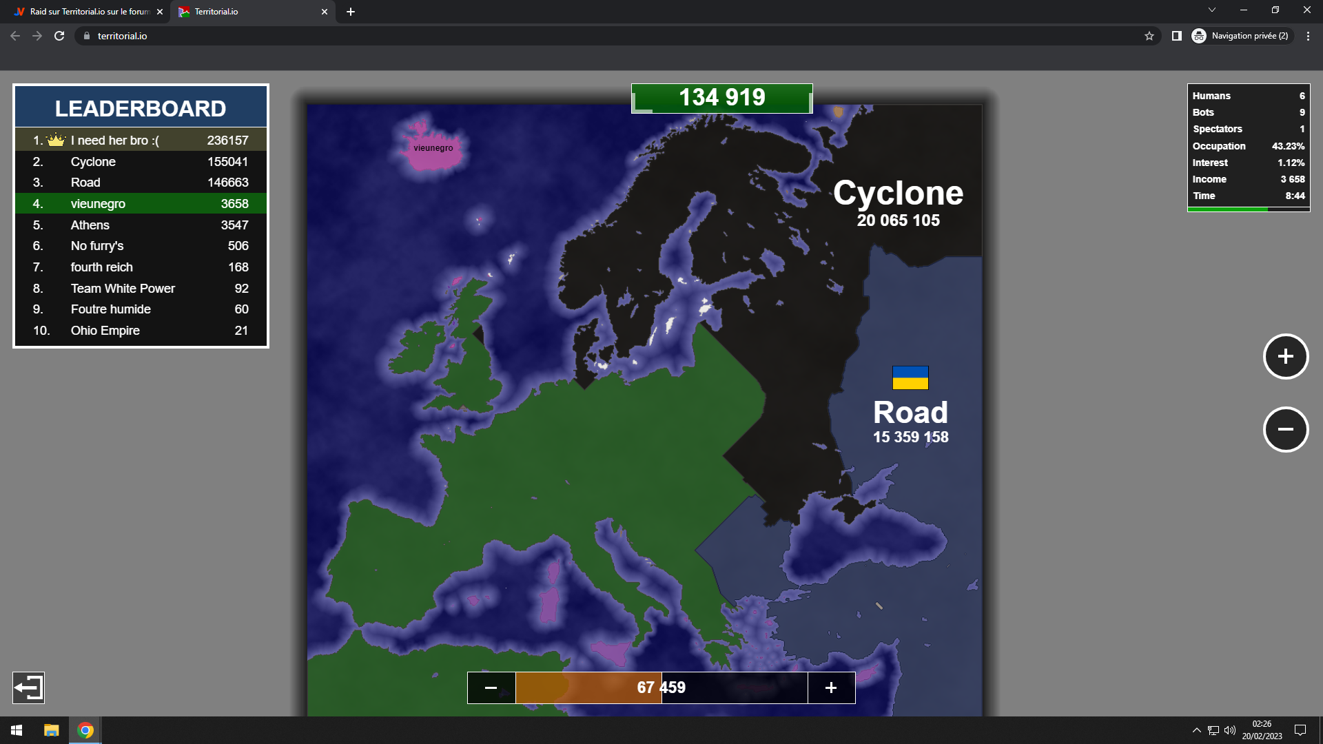 Le problème c'est que ça va très vite et puis en fonction des alliances, tu peux aussi envoyer des soldats pour les soutenir... je dis soldats mais ça semble plus être de l'argent en réalité.