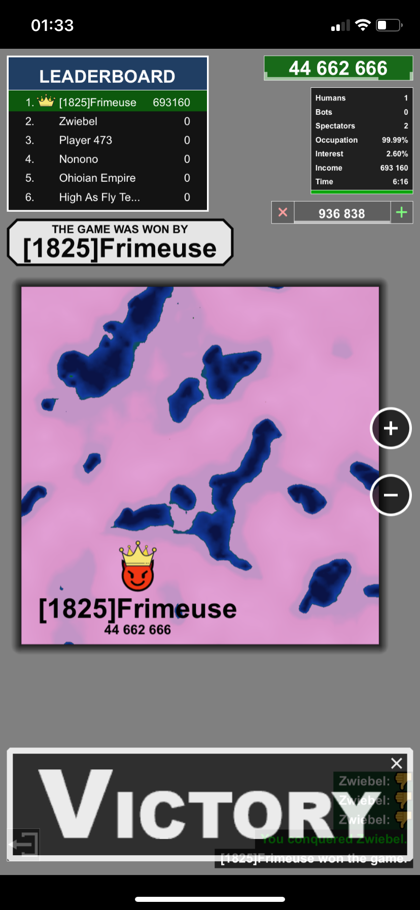 non mais t'as bien joué, moi je parle du moment où les ennemis au nord ont perdu, t'as essayé de les manger mais kyolss a pris une part dessus, c'est ça que je dis