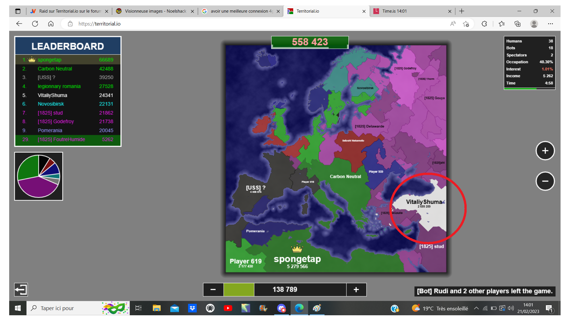 -Quand vous cliquez avec l'épée soit vous prenez un territoire libre (clique sur une zone libre), soit vous attaquez un pays (clique sur un territoire adverse).