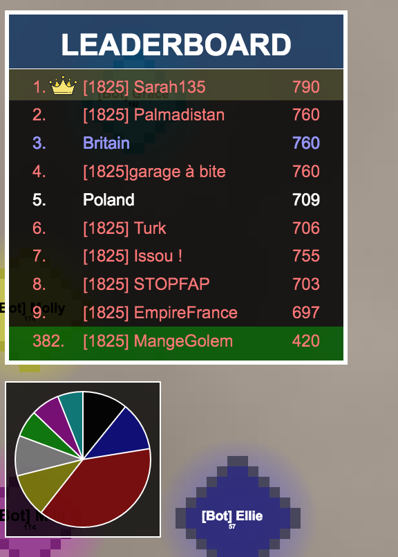 en regardant les scores du leaderboard tu vois qu'on est dans les premières secondes du jeu, et quand tu regarde le camenbert tu vois qu'on est déjà en position de domination totale dès le début.