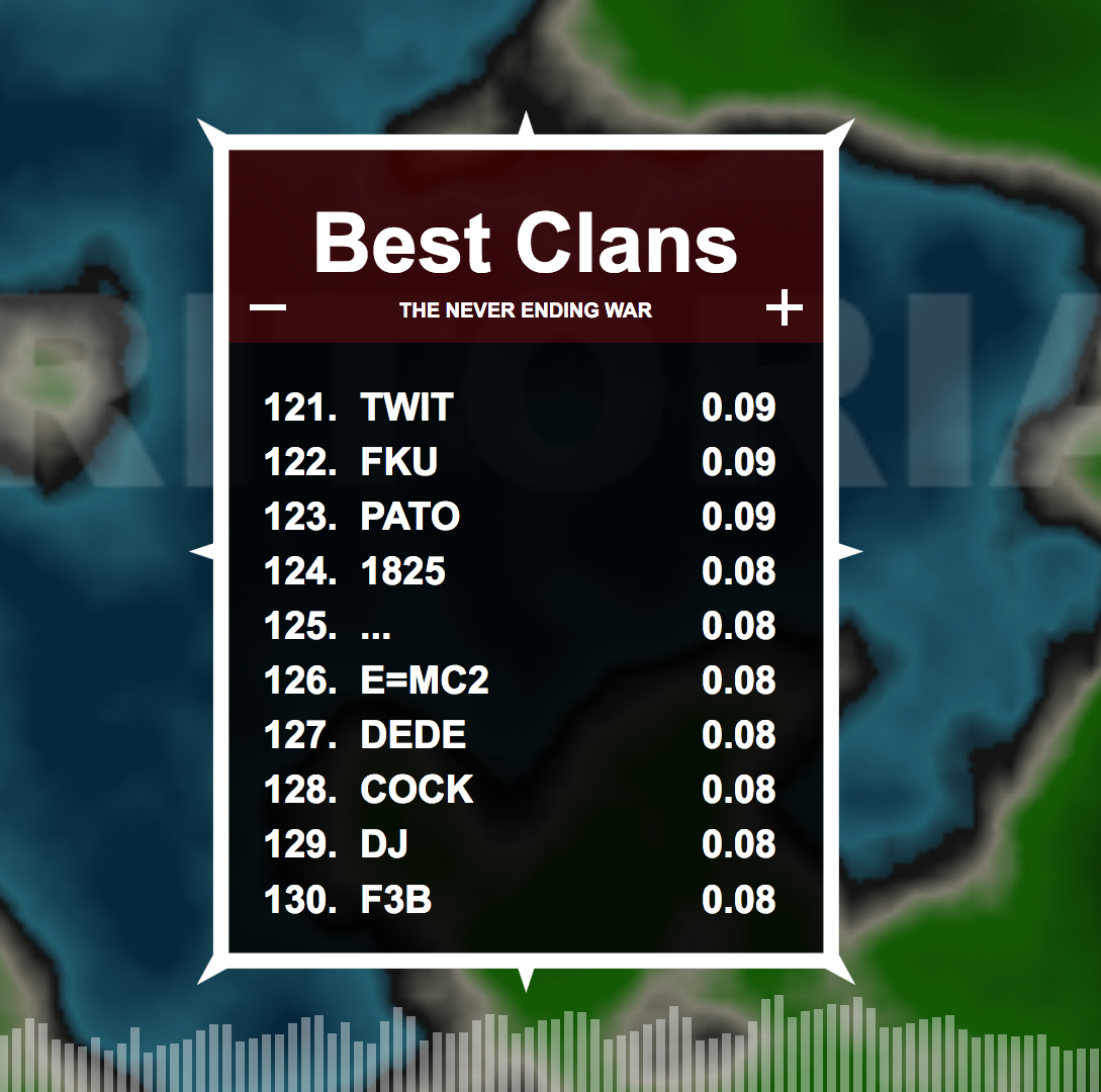 tous les clans sont enregistré, le nôtre l'est également depuis sa création, nous sommes actuellement classé 124 ème sur 370 , pour un début c'est excellent mais on a encore du chemin à faire avant d'atteindre le top 10