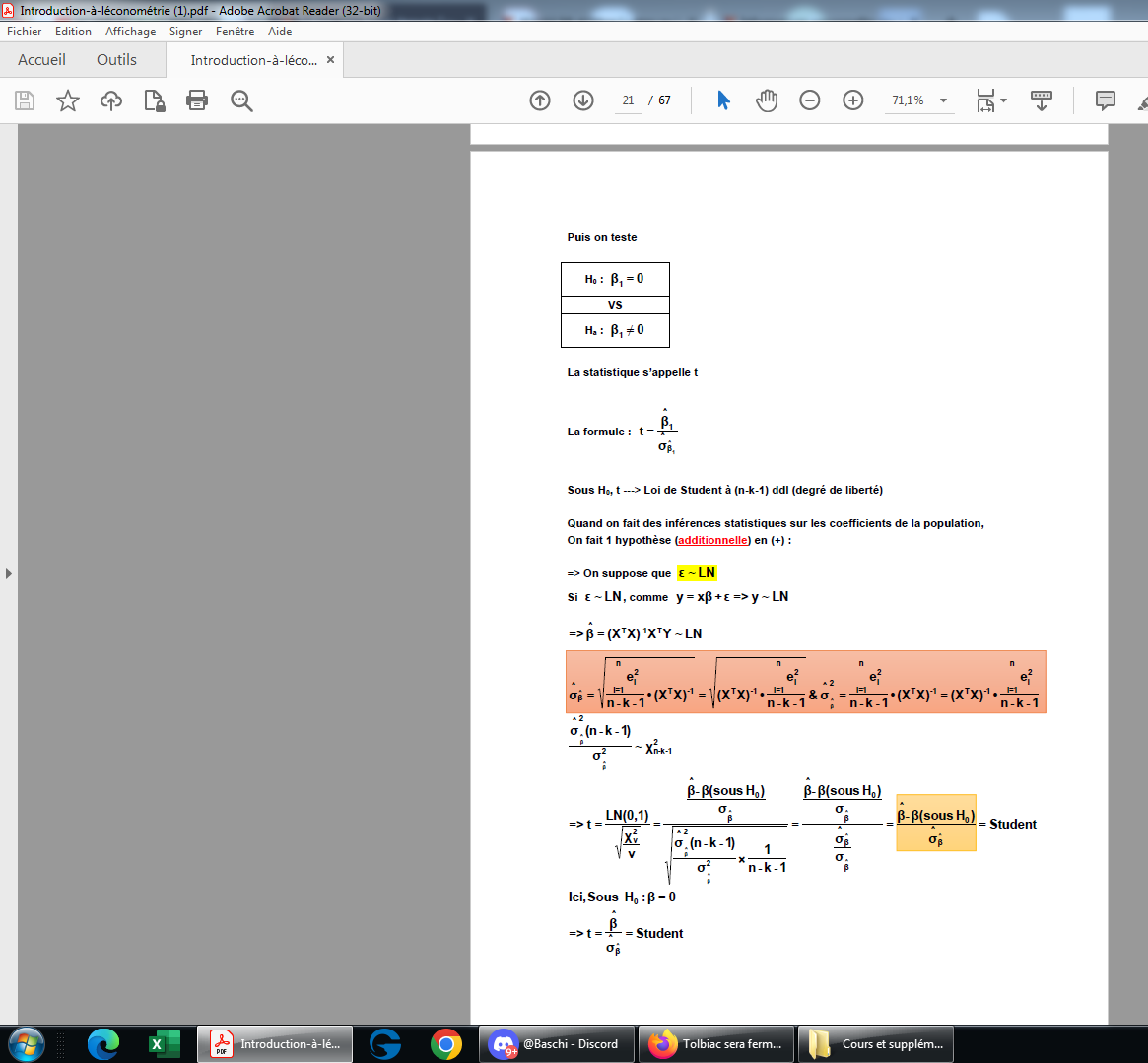 Abjecte cette matière, j'ai ouvert le manuel d'un ami un jour, j'ai trouvé ça horrible. Le pire reste les exemple avec 50 000 sommes sur la même page (je crois que t'as le pdf de l'intro à l'économetrie de chez de boeck il doit y être non?).