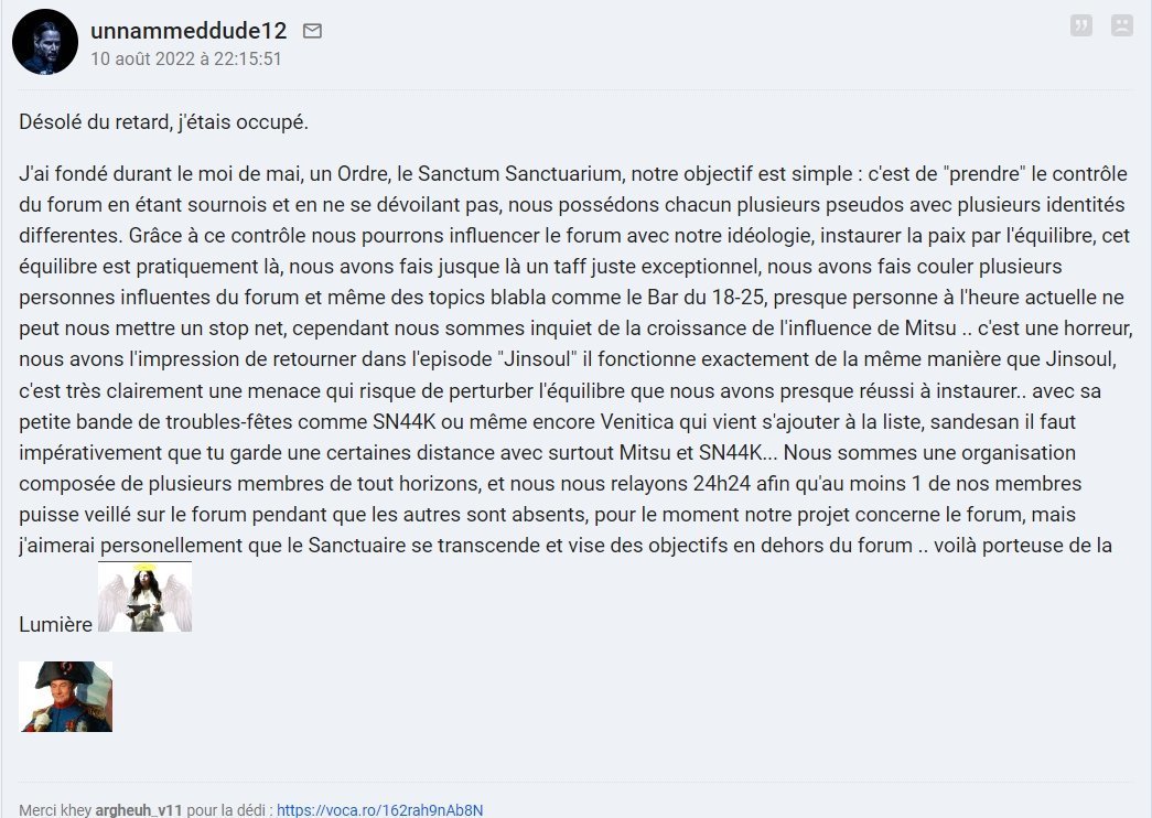 L'ordre du Léviathan aka Sanctum Sanctuarium brisé par 4 mecs en calebard sur jvc![]()