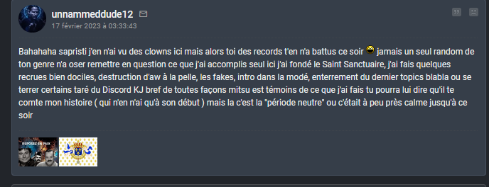 Le 17 février 2023 à 03:14:13 unnammeddude12 a écrit :