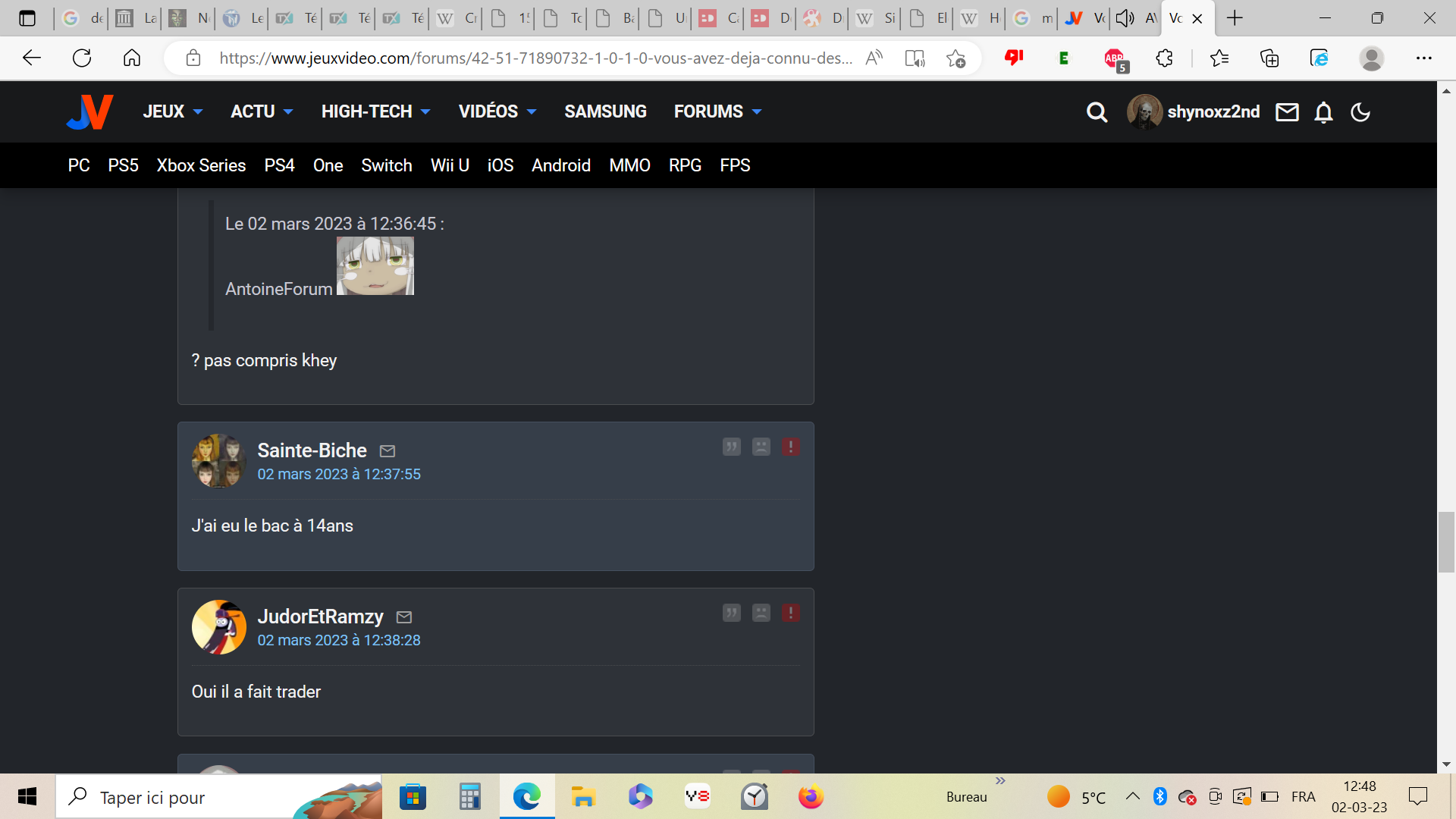 Le 02 mars 2023 à 12:49:45 AgentEUSSOU53 a écrit :