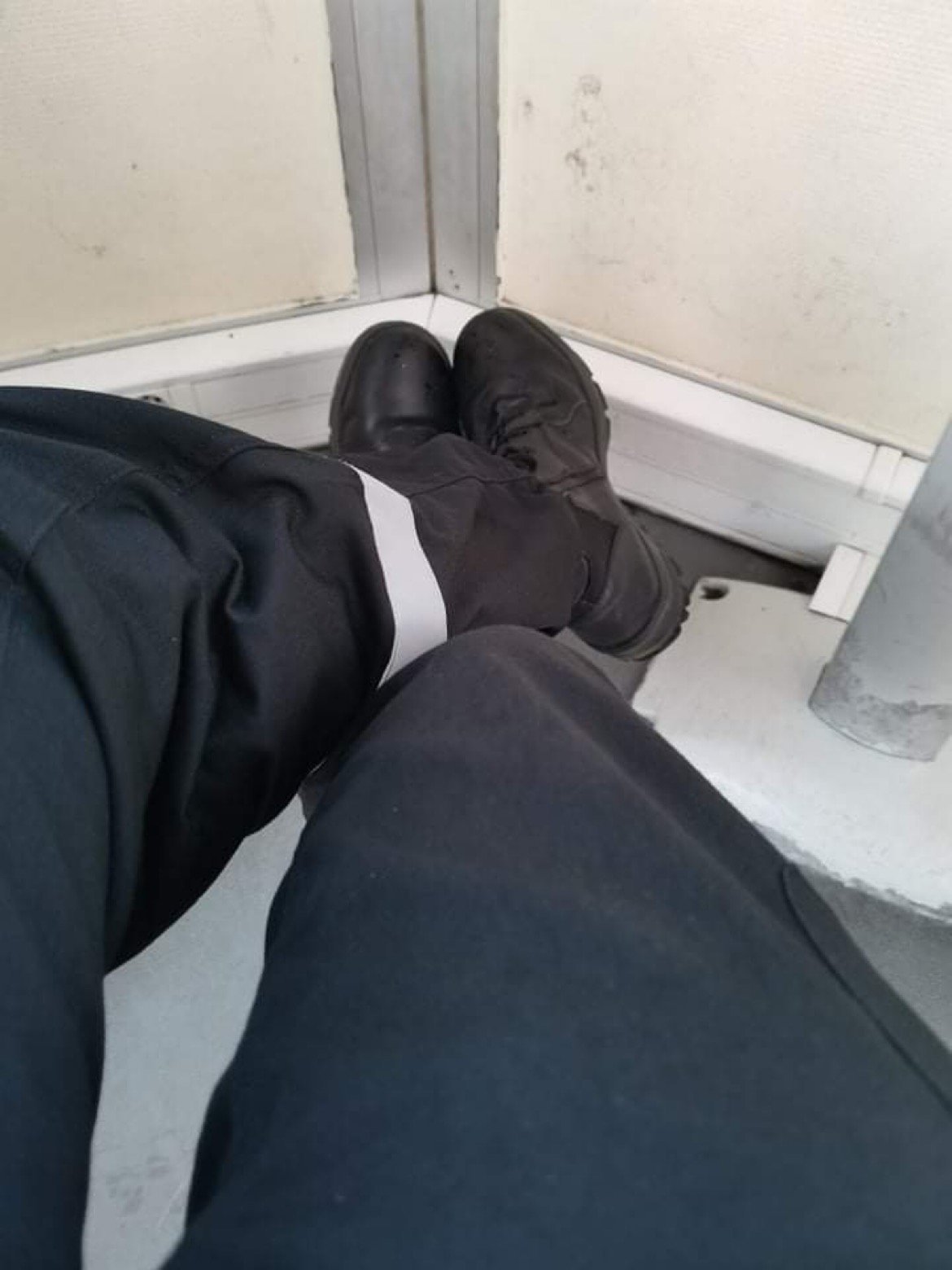 A peine le temps de se changer pour rejoindre son poste et faire le piquet a l’entrée d’une usine pendant 12h et contrôler les sacs de tout le monde