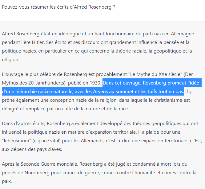 Rosenberg c'est le théologien officiel d'Hitler. Le mec a qui tu parle est surement un pro aryen
