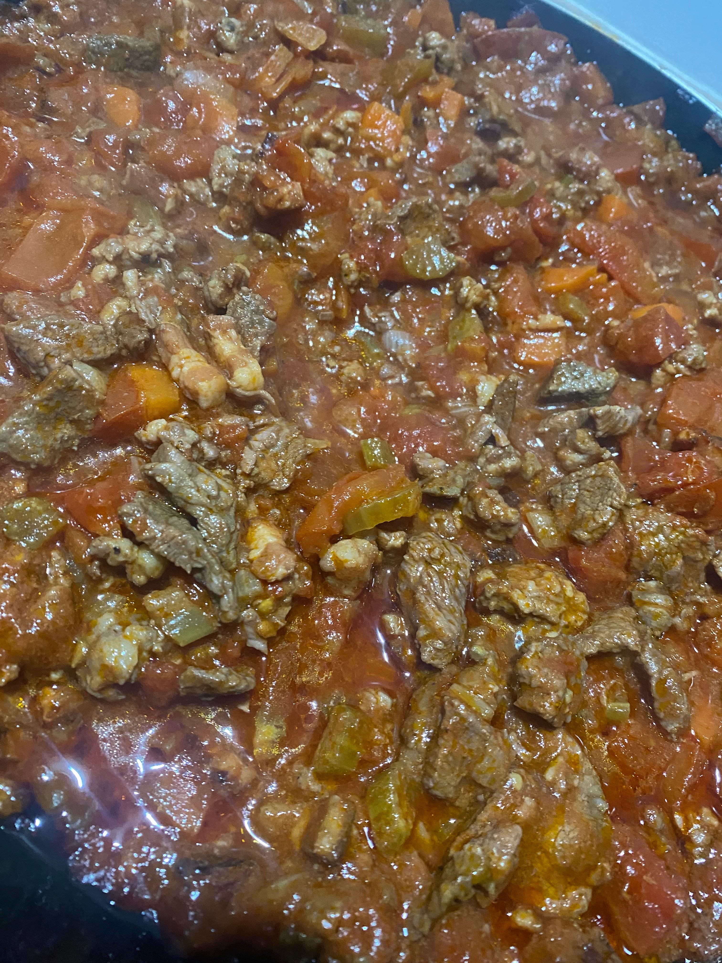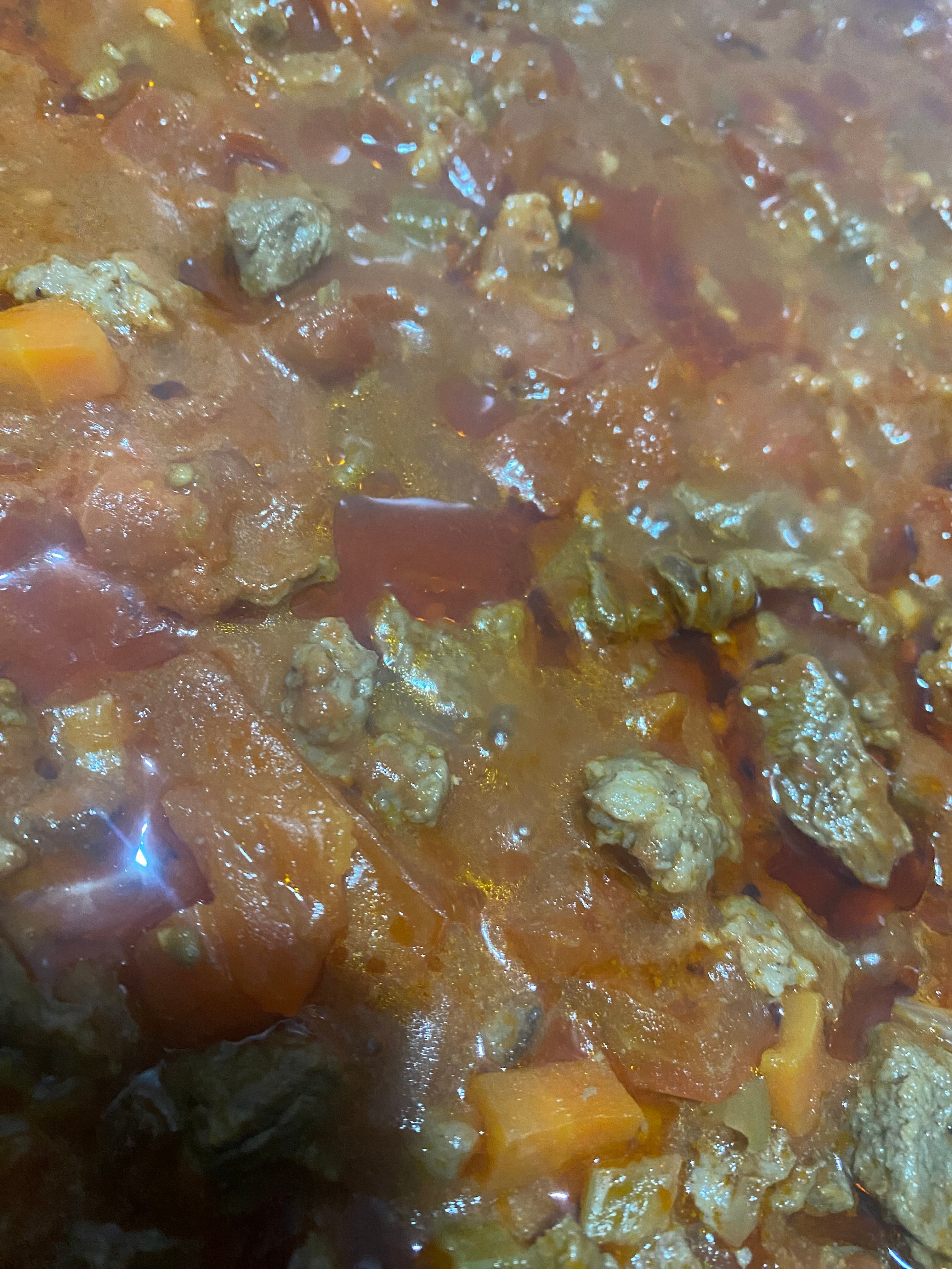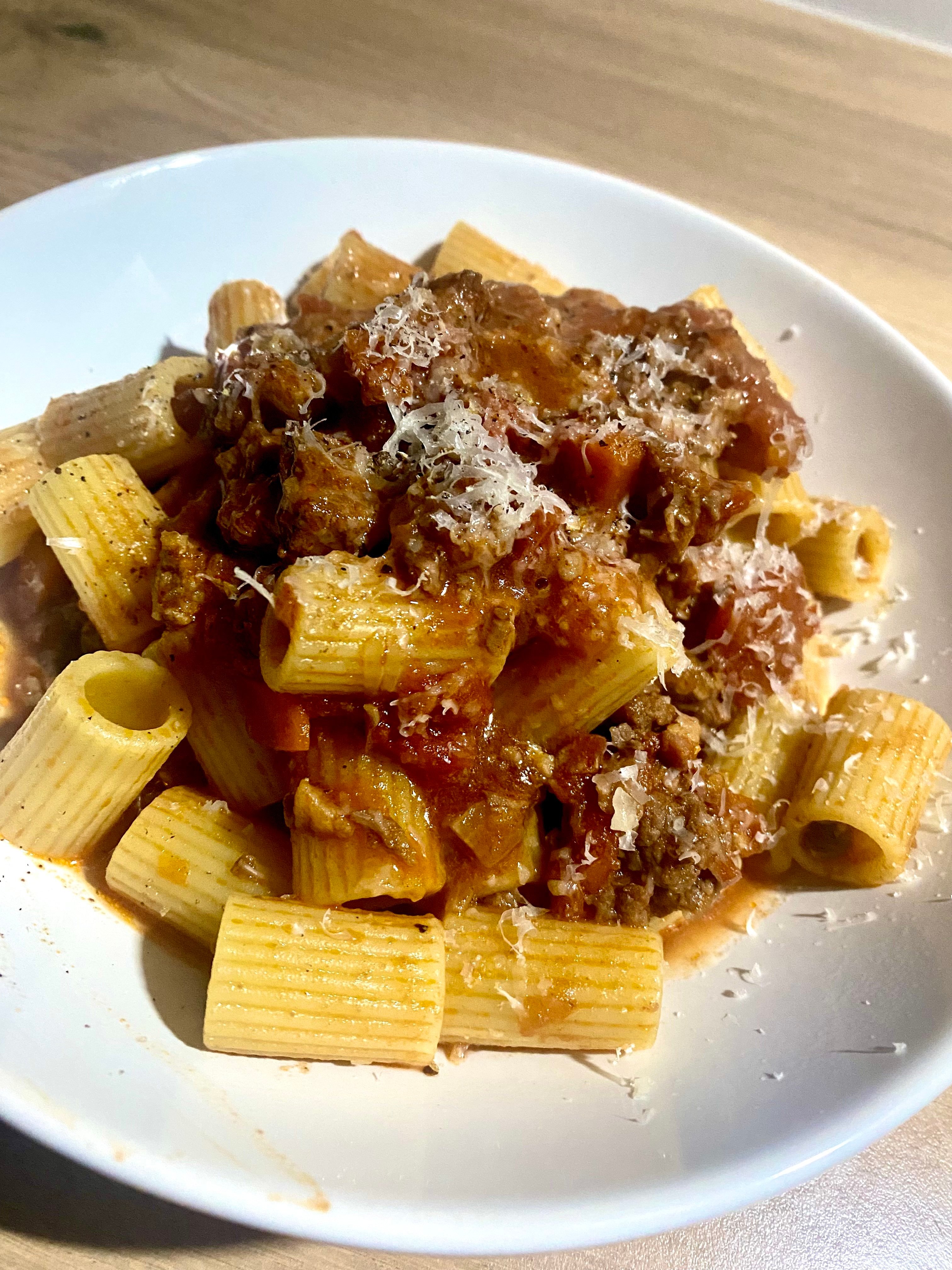 Bah comme j’ai dit, hier soir préparation de 30min, mijotage de 3h. Aujourd’hui mijotage de 2h + préparation des pâtes en même temps sur les 20 dernières minutes de mijotage.