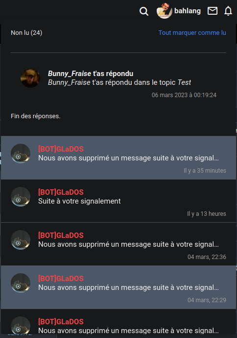 Vous pouvez ensuite cliquer sur la notification pour aller sur le topic.