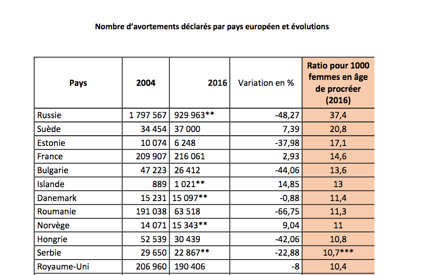 • Pays où il y a le plus gros ratios d'avortement en Europe.