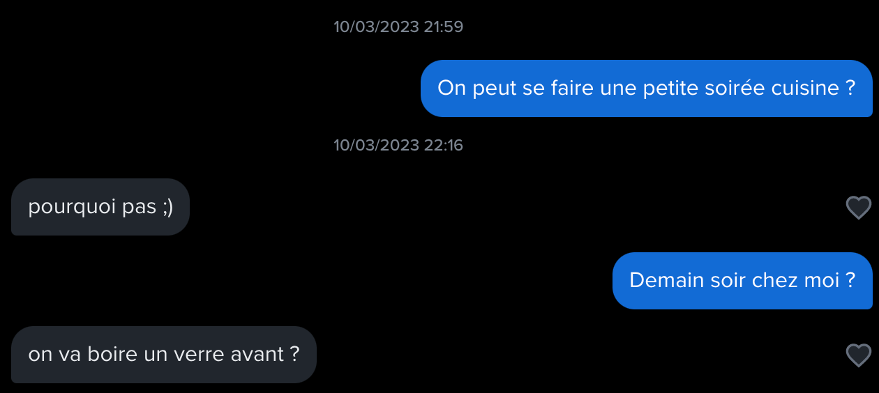 J'ai une copine mais on est à distance depuis plusieurs mois.Je viens de trouver un date pour demain soir en 3 messages sur Tinder. Mais je pense annuler parce que je me sens mal pour ma meuf (je l'ai déjà trompée).