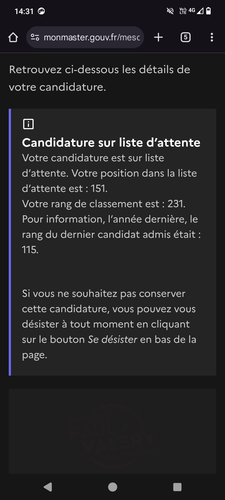 et que je suis tombé en dépression durant mon master à distance (du coup défaillant),