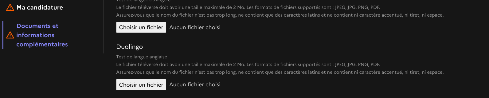comme ça je continu de faire les candidatures je dois changer de nom à chaque fois sur les dossier à téléverser je comprends rien