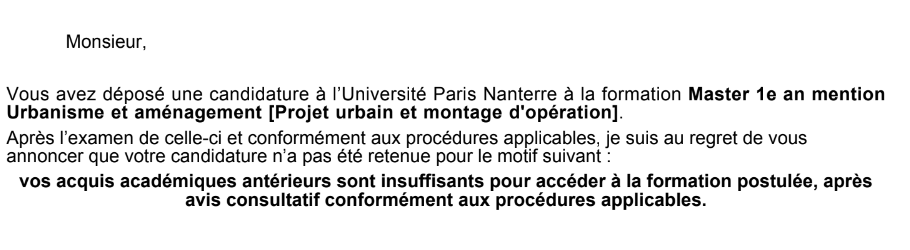 > Naturelle pour ceux qui se sont fermé des portes (ne compter que sur les masters d'universités + ne postuler qu'à 1 master)