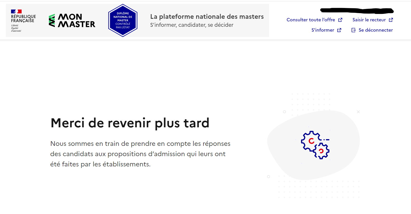 Nous sommes en train de prendre en compte les réponses des candidats aux propositions d’admission qui leurs ont été faites par les établissements.