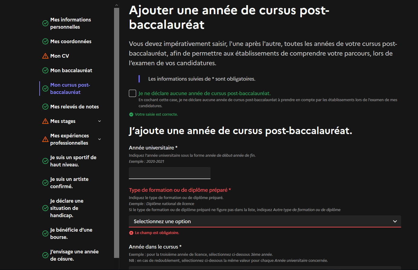 "Ajouter une année de cursus post-baccalauréat"