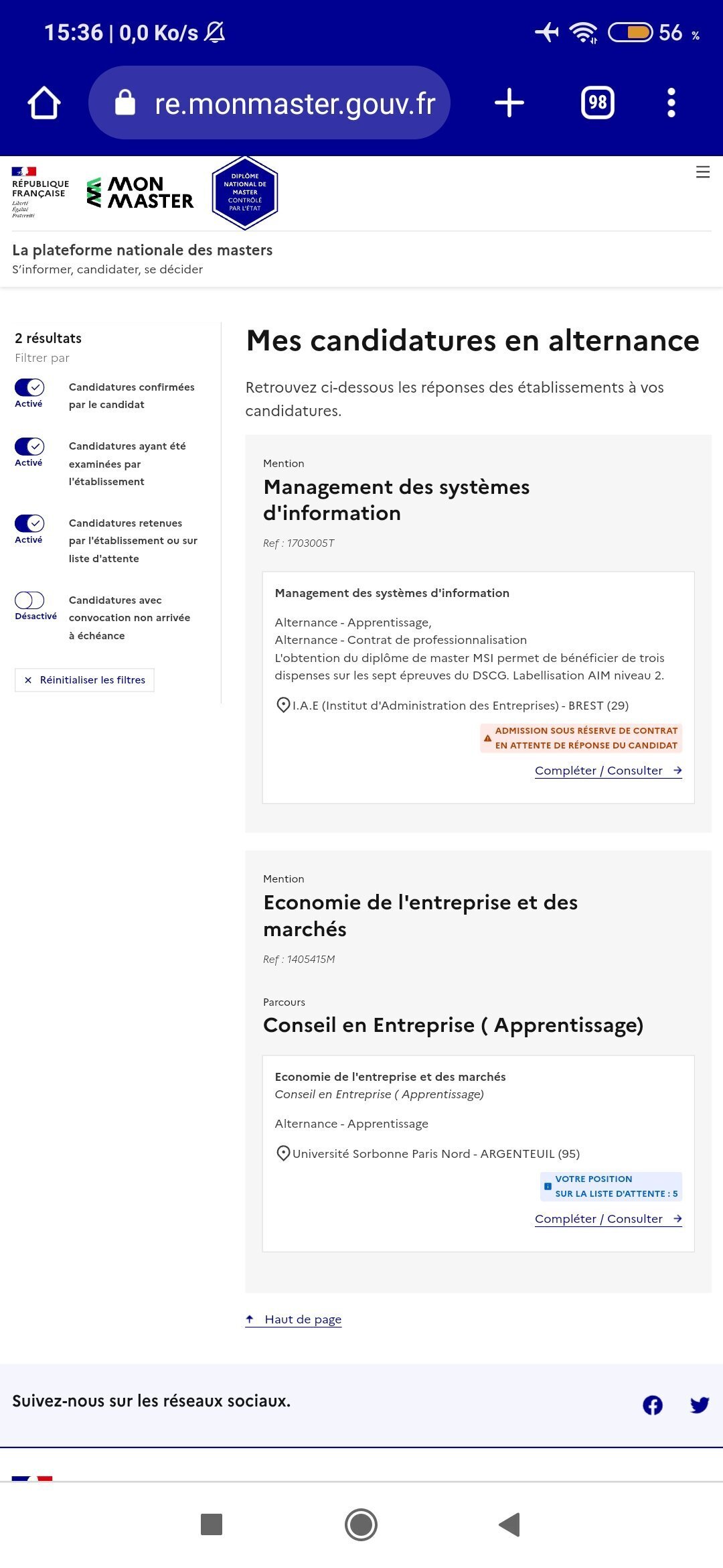 Ils ont tous contacté monmaster pour retrouver leur place en liste d'attente, demain vous aurez sûrement un pire classement qu'aujourd'hui
