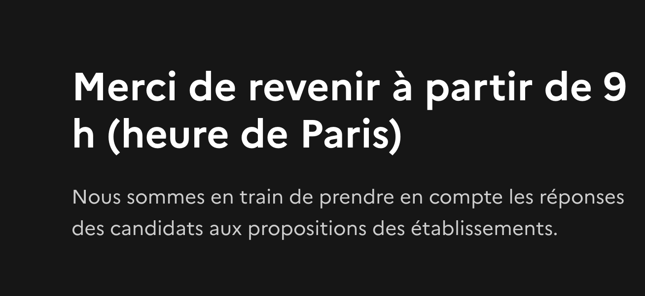 Le 04 juin 2024 à 00:13:52 :Restez à l'affut l'année dernière j'ai reçu un mail à 6h pour dire que j'avais une propoisition