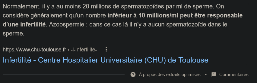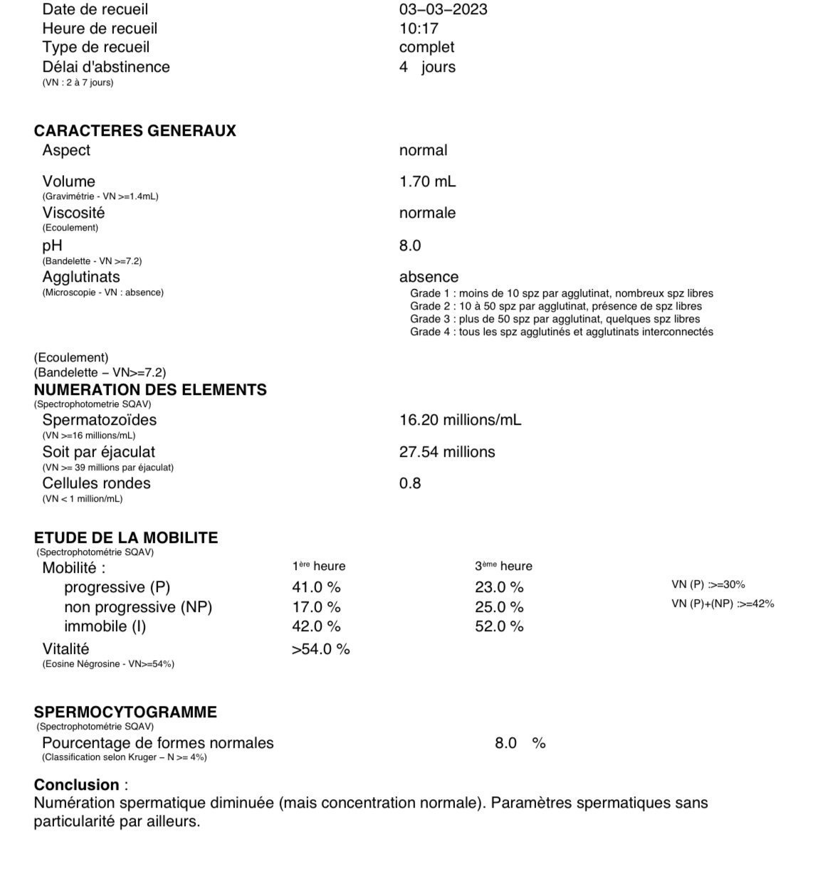 Y a simplement le 27,54M au lieu de 39M de spermatozoïdes qui pose problème, non ?