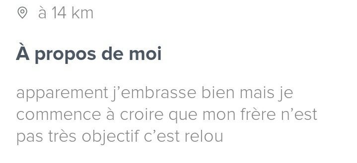 Enfaite j'ai relancé mon compte Tinder hier soir donc bon vu que je ne paye jamais je suis juste en bas de la pile