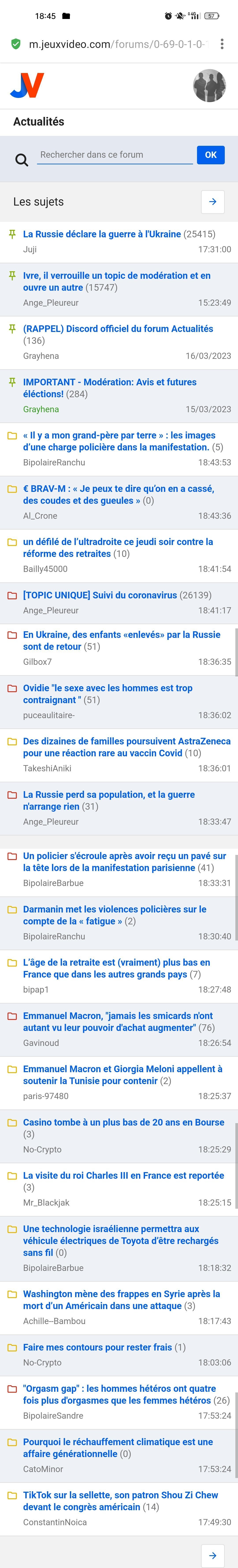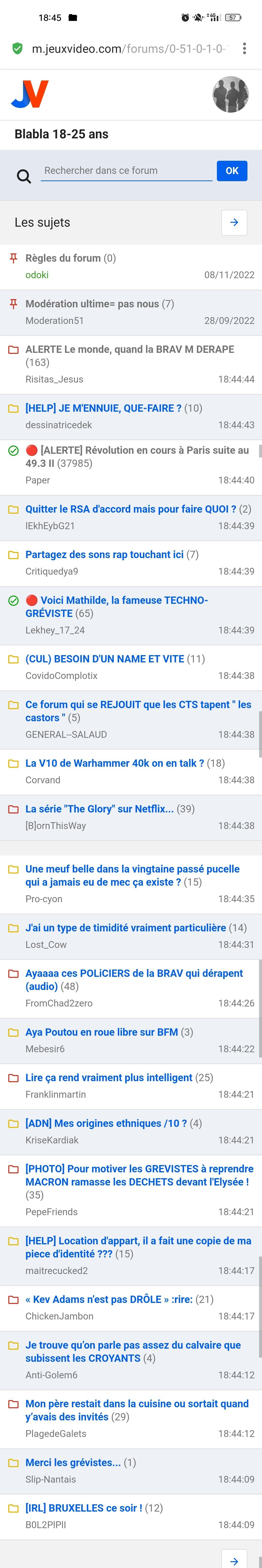 Chaud tous les topics avec une âme, des histoires marrantes ou un peu glissants ont disparu, c'est devenu une sorte de revue de presse avec débats entre bot lrem et quelques kheys restants