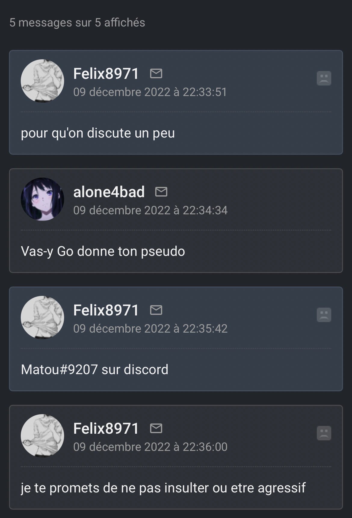 Lucas 32 ans s’amuse à harceler des gens sur le forum et sur discord car il n’est pas content de se faire recaler sur le forum par plusieurs kheyettes et très jaloux des kheys qui réussissent, jusqu’à là rien d’anormal.