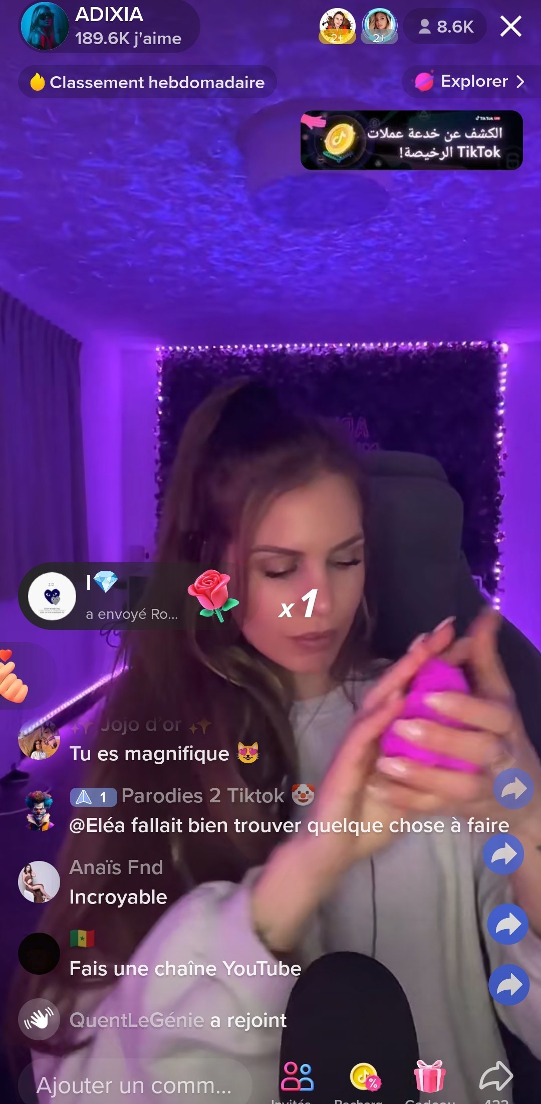 Elle est à quasiment 300k de likes en 15 minutes de lives je pensais c'était une random de la TV réalité