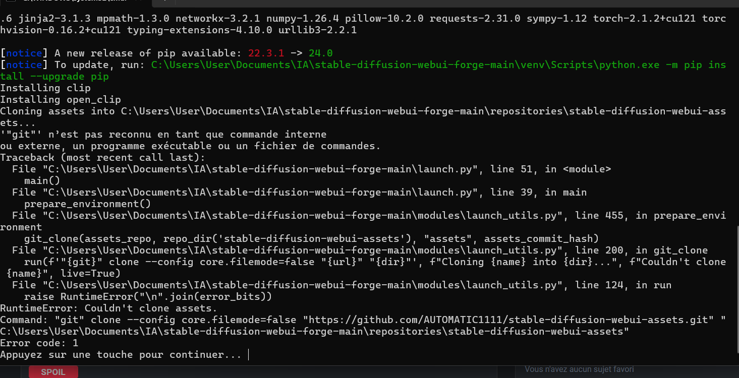 Quelqu'un peut me dire pourquoi l'ia ne veux pas s'installer ?