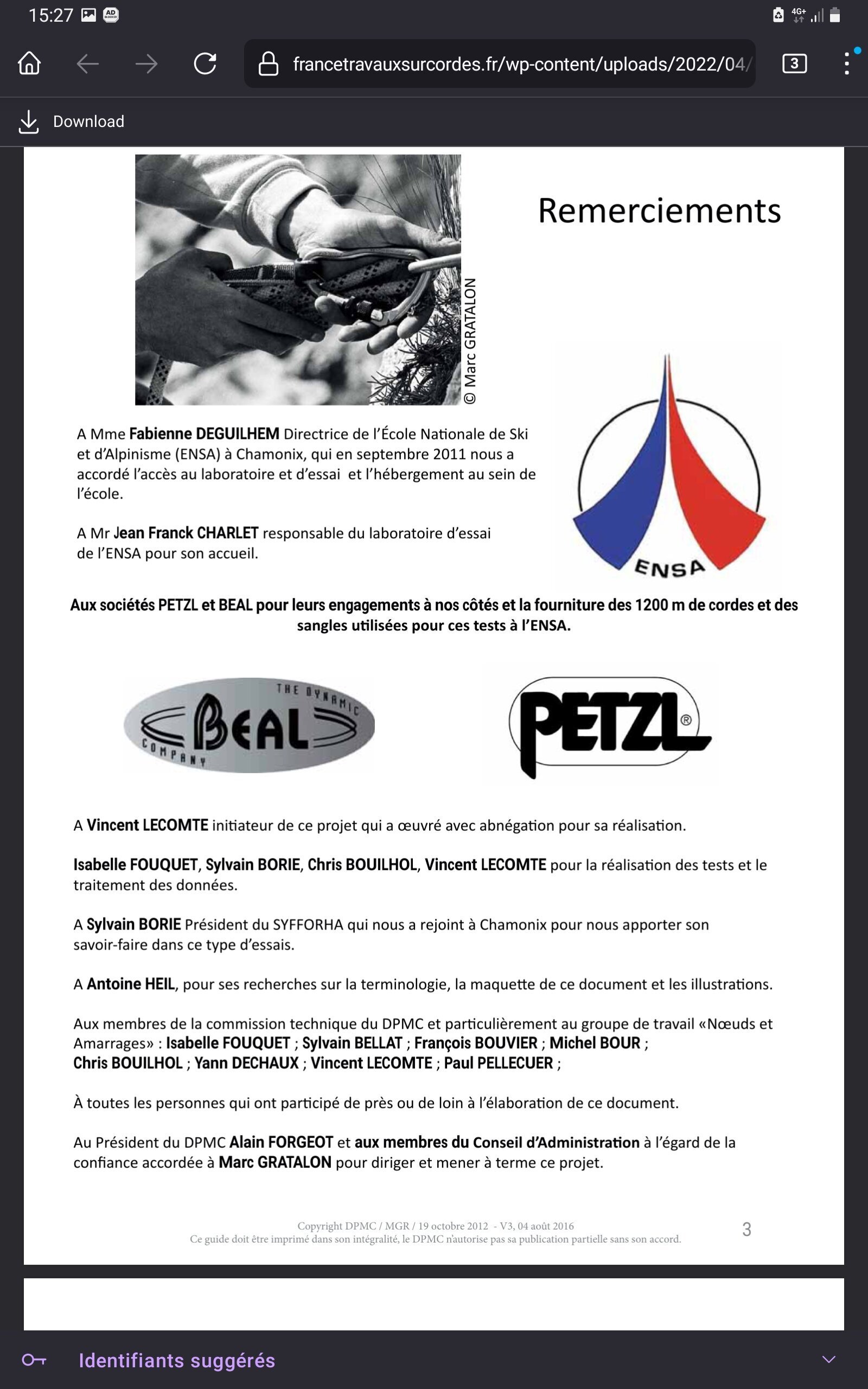 demain tu as le livret sur l'encordage .Ça sort de l'Ensa ,école des guide de Chamonix