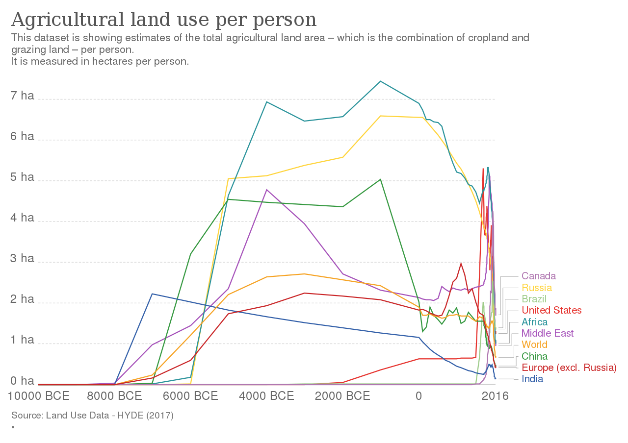 plus tu produits par unité de surface, moins tu as besoin de surface.