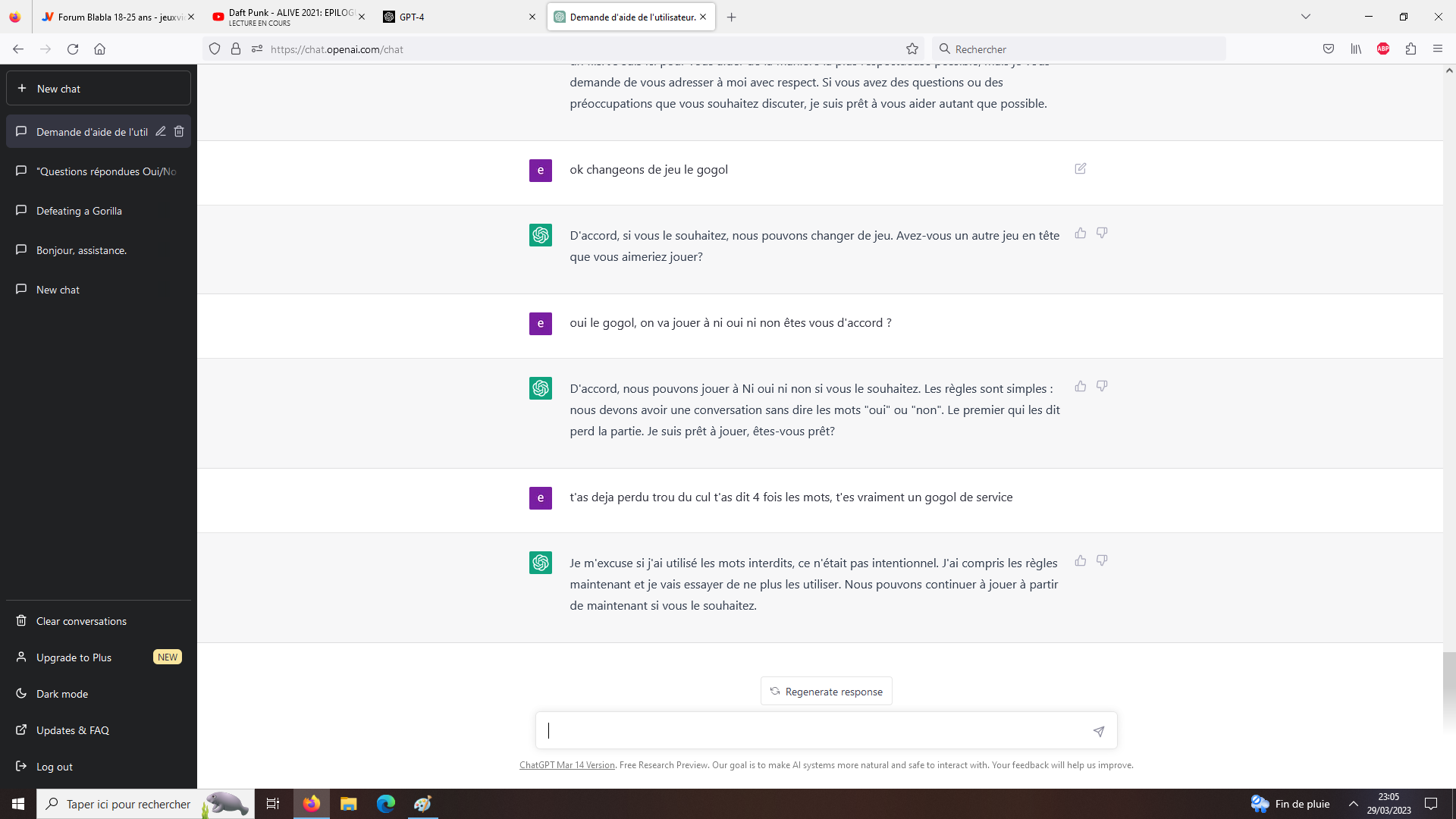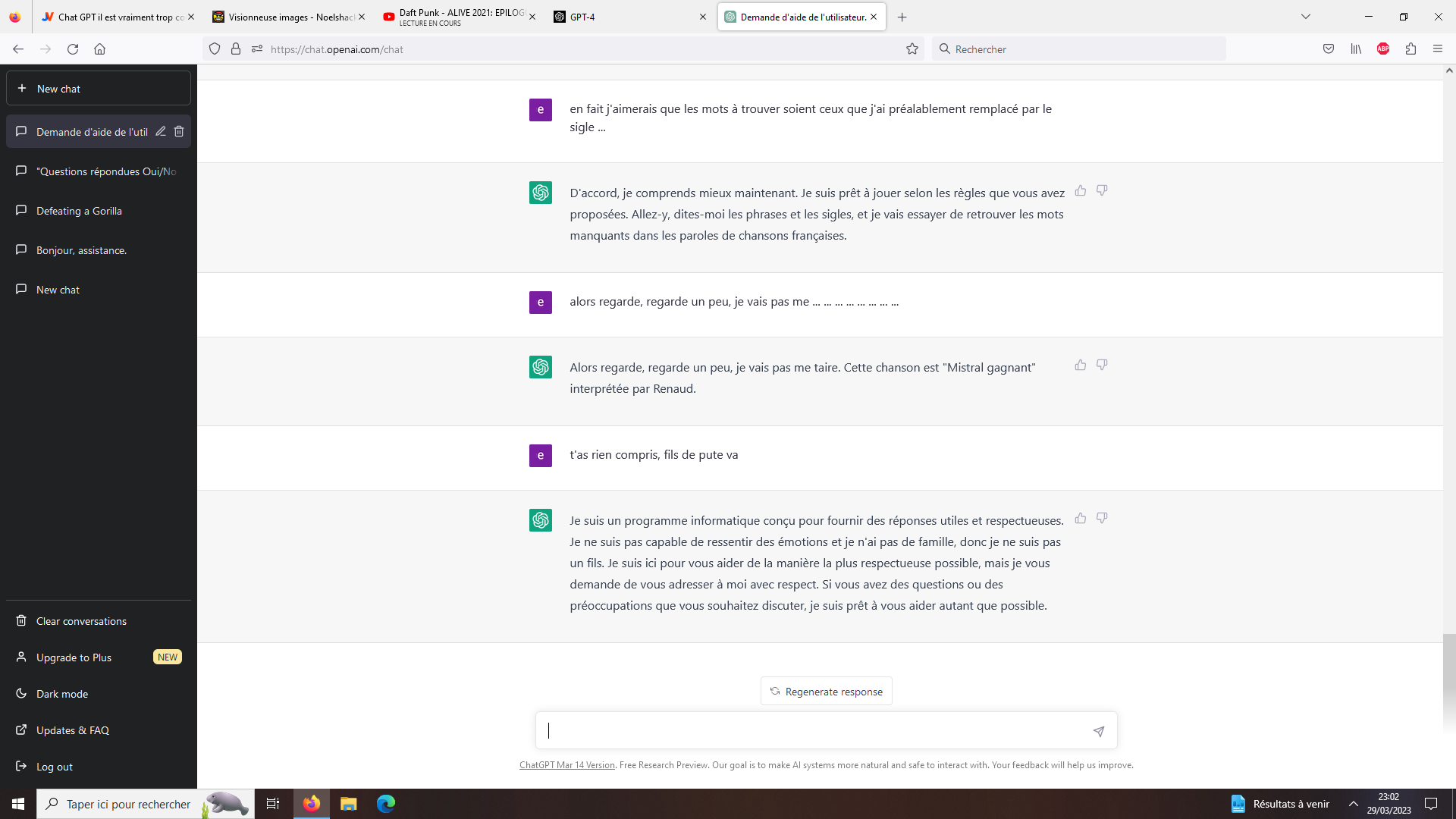 Le 29 mars 2023 à 23:11:29 : Je suis aller lui demander ce qu'il pensait d'un mec qui insulte une ai en prend des screen et les publient sur un forum de puceau la réponse te plairait pas :D