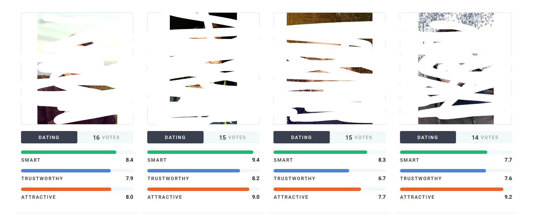 Photofeeler tu peux sélectionner sur quoi tu vas te faire noter , les meufs qui notent les photos pour un date tkt pas qu'elle donnent pas 9 à un moche même si sa photo est bien