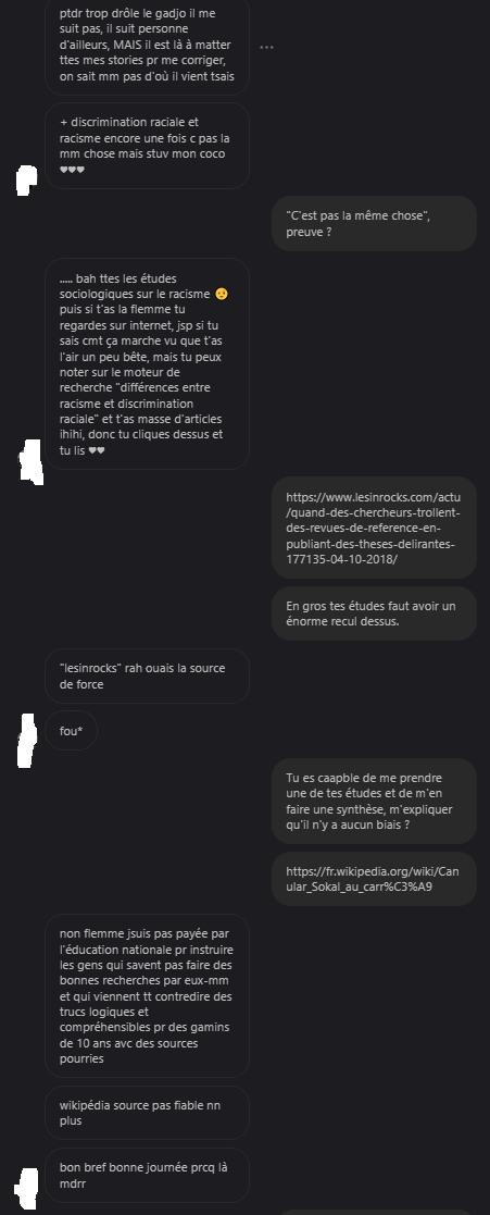 Tu nies le fait que certaines personnes issues de minorités, en France, subissent des brimades racistes l'op ?