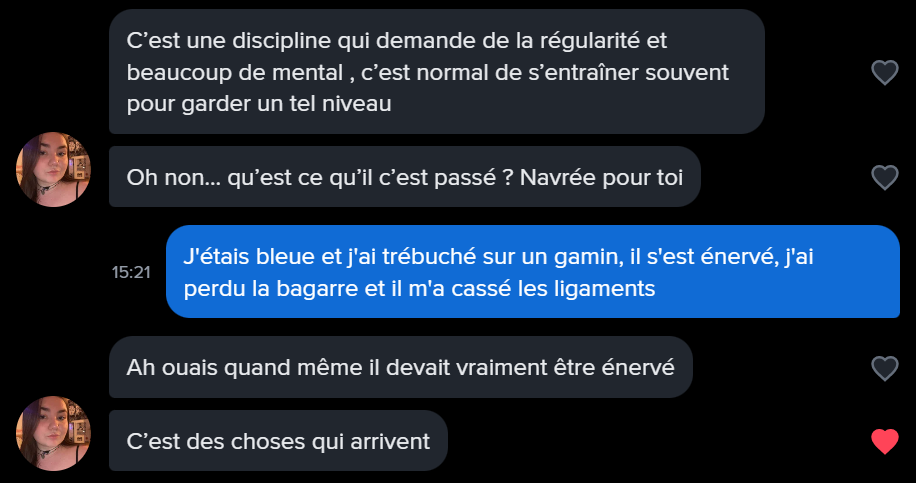 y'aura un gros décalage en plus avec la discussion réelleVoilà c'est exactement ce que je voulais dire avec mon précédent post. Ca se voit que c'est malaisant, faux des 2 côtés. Qu'il y a une envie malsaine d'être à tout prix en couple, de se forcer, de ne pas vouloir rester seul. C'est forcé, artificiel, pas naturel. C'est malaisant.