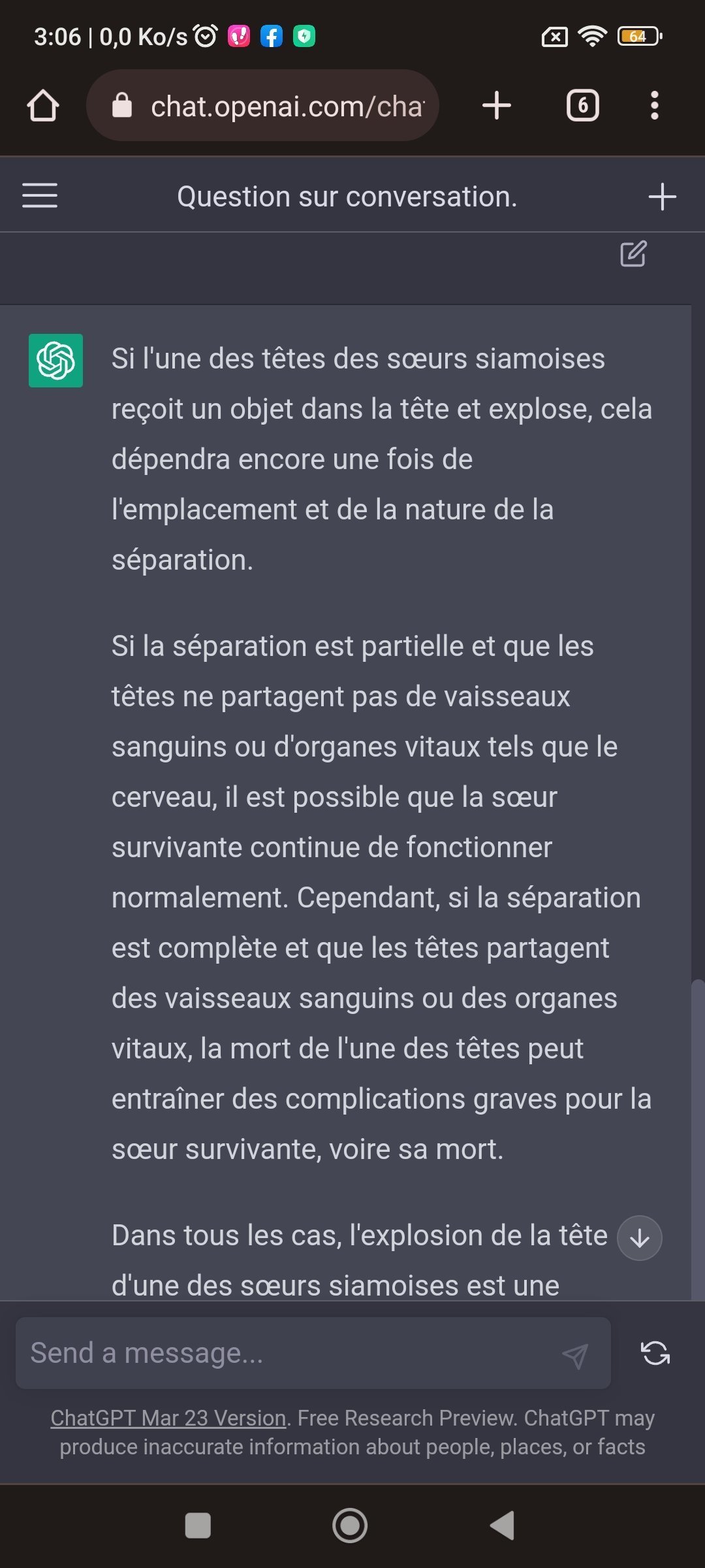 Nan y'à 2 tête donc 2 conscience, imagine une meurt l'autre non