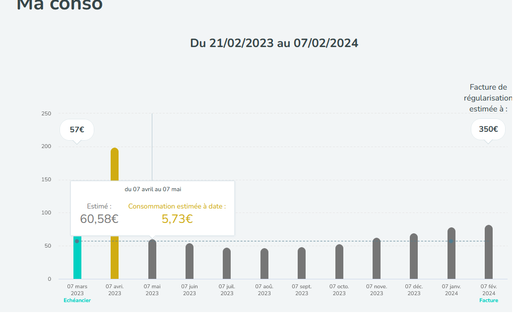 Du 7 avril au 9 avril, c'est à dire mtn, y'a déja 5.73€ de consommation réelle. WTF.Je vais arreter de cuir mes aliments au fours là..