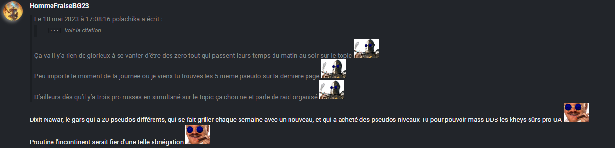 A tout les coups les mêmes pseudo de zéro tout sur les 4 prochaine pages que j’ai pas lu