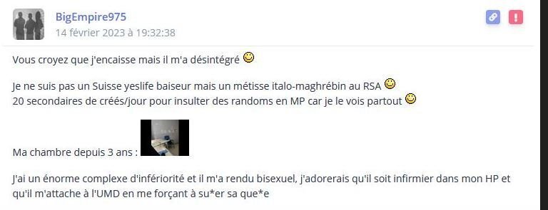 Je parle du brisé qui a spammé les DDB de rage hier quand il était en PLS
