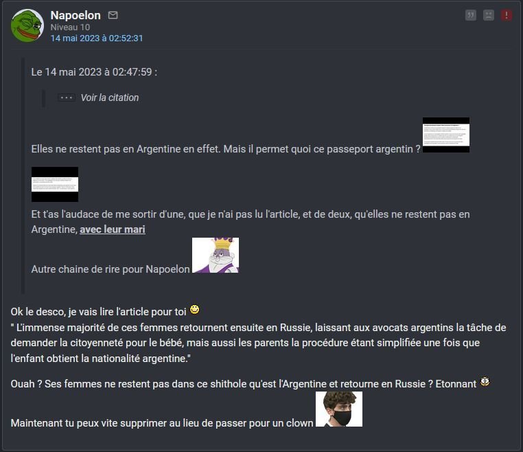 Ah ouais, carrement tu screen des conversations pour les resortir toi .. t'es totalement matrixé Descolin , détend toi