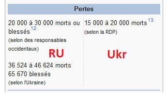 Franchement j'y croit pas du tout a votre ratio 1/3 , au mieux ça serait du 50/50 mais quand on regarde les chiffres il y a plus d'ukrainiens mort que de russes